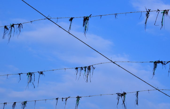 Reste an den Drähten nach der Hopfenernte